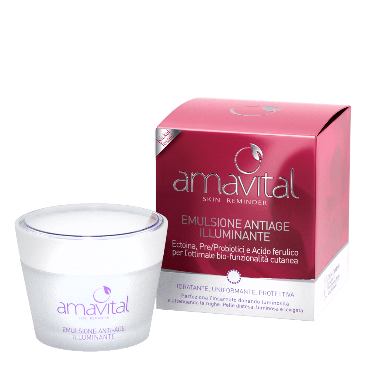 La formula combina le proprietà idratanti e antiage di un complesso vitaminico, l’azione antiossidante dell’acido ferulico e il supporto protettivo e riequilibrante di pre e probiotici, contribuendo a mantenere la pelle sana, luminosa e uniforme.