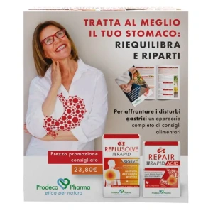 GSE KIT TRATTA AL MEGLIO IL TUO STOMACO – REFLUSOLVE RAPID 14 stickpack+ REPAIR RAPID ACID 36compresse – PRODECO PHARMA