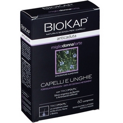 Biokap Anticaduta Miglio Donna Forte è un integratore alimentare pensato per la donna, utile per contrastare la caduta dei capelli, rinforzare la fibra capillare e rafforzare le unghie fragili.